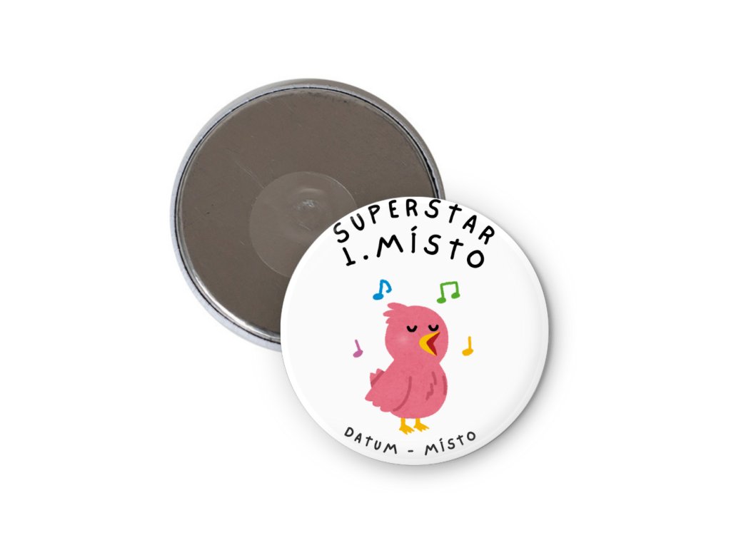Průměr placky dle zvolené velikosti 44mm nebo 56mm, tloušťka cca 5mm